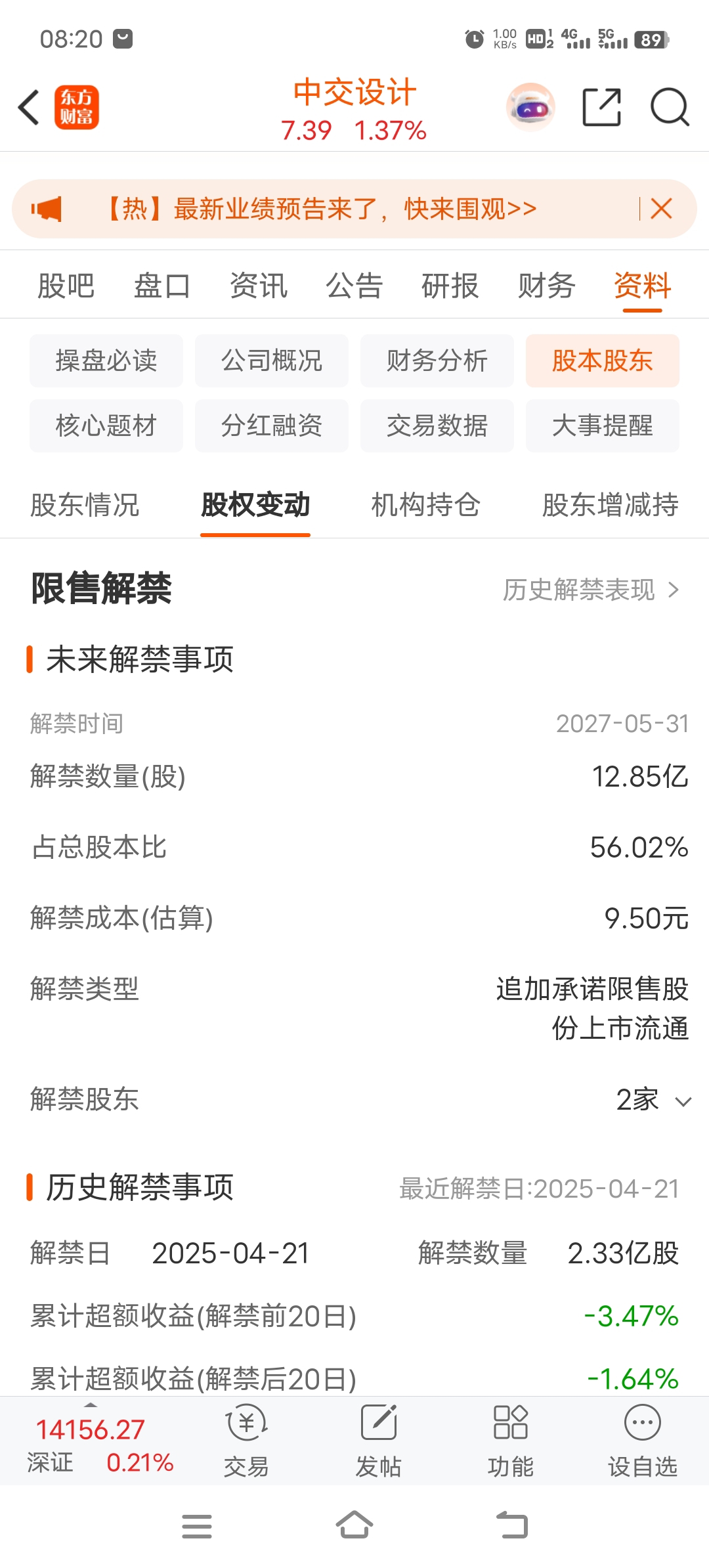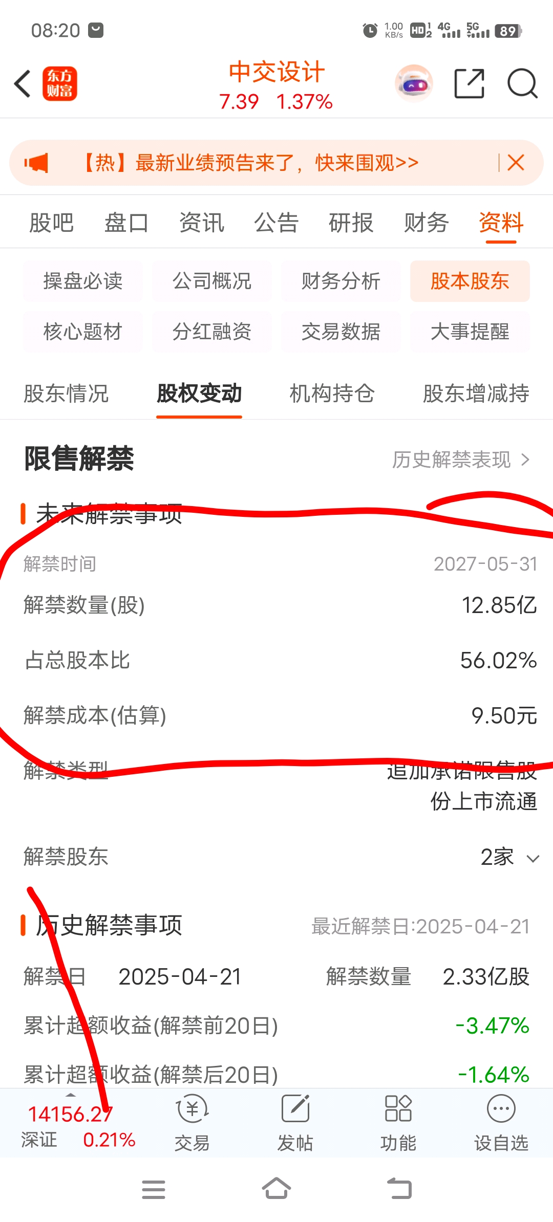 有这个解禁在,这个股票不可能大涨