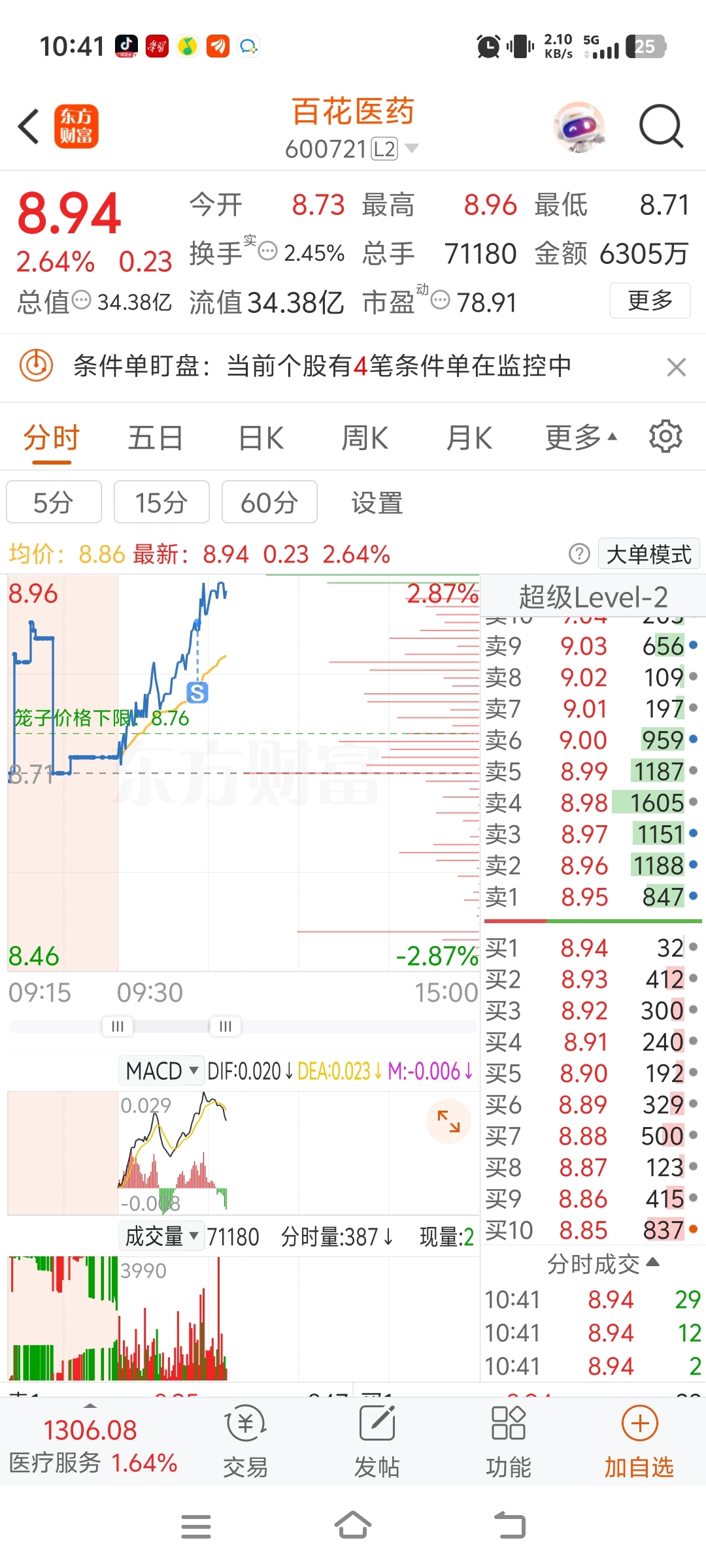 $百花医药(SH600721)$ 哎,不适合炒股!套住就死拿,稍微回点就卖了