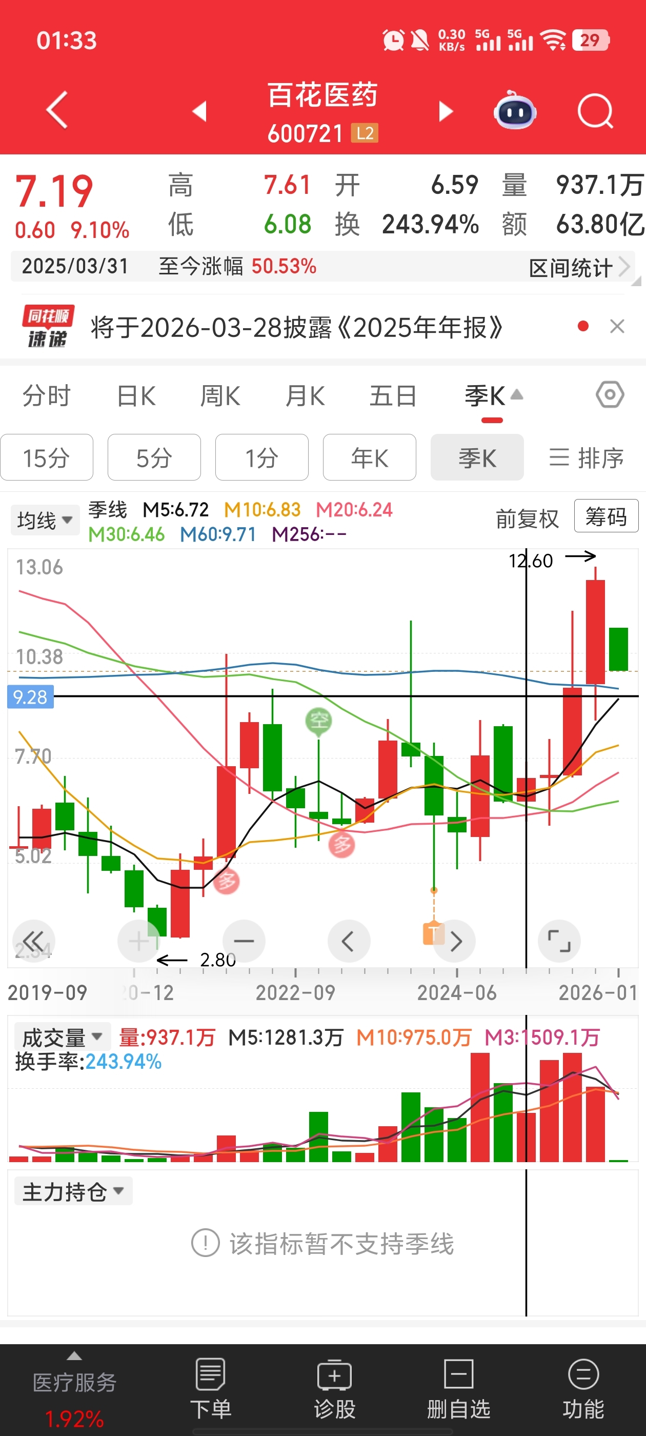 $百花医药(SH600721)$ 没走的也不用走了补仓做t吧,就这点成交量不用一个月就新高了最多回踩下五季线,我拿了三年都没动。