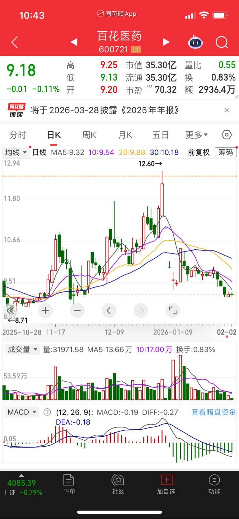 $百花医药(SH600721)$ 看到这根虚线了没,我在这里,风急天冷