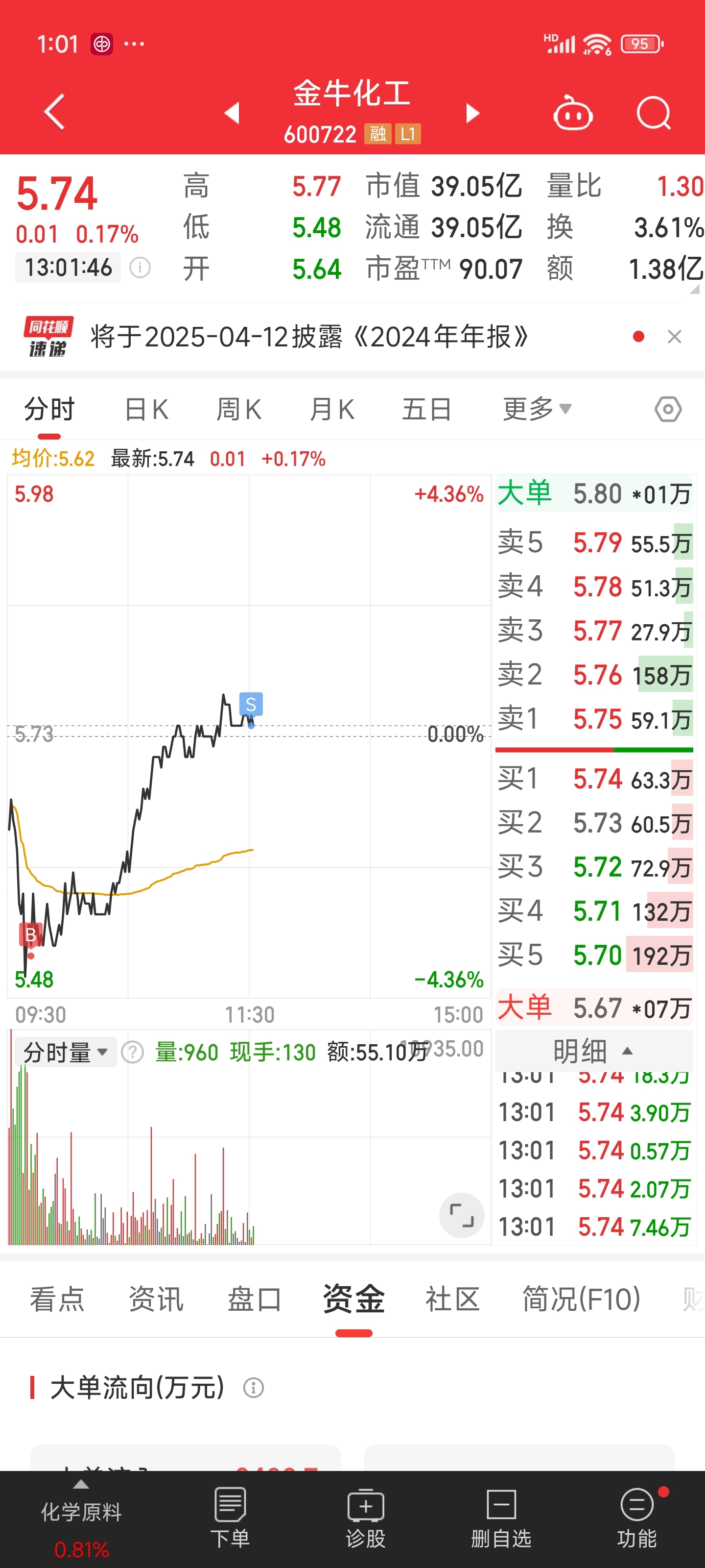 $金牛化工(SH600722)$ 今天工作完成,下班