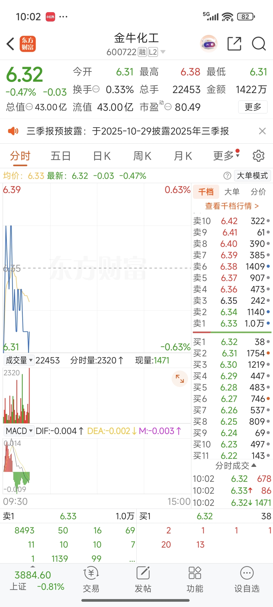 $金牛化工(SH600722)$ 分时6.33挂1w手,你搁这展示猪肝呢?