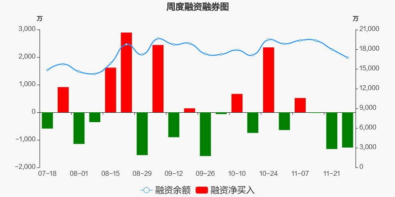 金牛化工本周(2025/11/24-2025/11/28)累计涨幅达5.15%,截至11月28日最新股价报收6.33元。从增量上来看,11月24日至11月28日融资买入交易规模1898.72万元,融资偿还规模3177.71万元,期内融资净偿还1278.99万元。从存量上来看,截止11月30日,金牛化工融资融券余额1.67亿元,其中融资余额规模1.67亿元,融券余额规模0元。