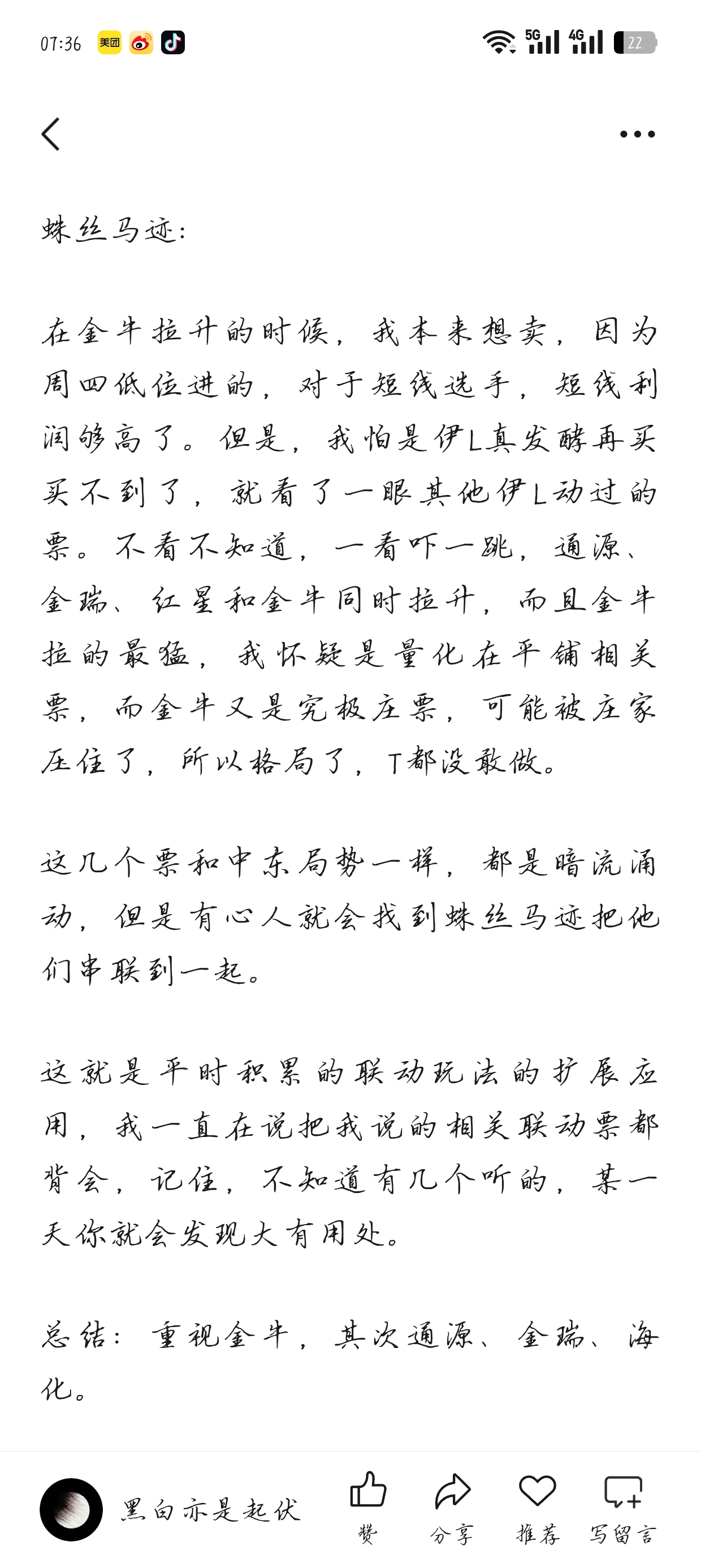 郑重声明:用户在财富号/股吧/博客等社区发表的所有信息(包括但不限于文字、视频、音频、数据及图表)仅代表个人观点,与本网站立场无关,不对您构成任何投资建议,据此操作风险自担。请勿相信代客理财、免费荐股和炒股培训等宣传内容,远离非法证券活动。请勿添加发言用户的手机号码、公众号、微博、微信及QQ等信息,谨防上当受骗!