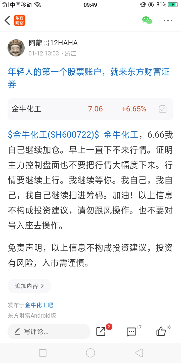 金牛化工,从行情走势看,今天盘面非常强势。有望冲到涨停,昨天我6.66加仓,加仓