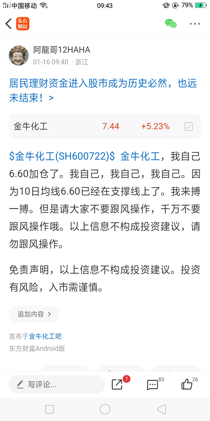 温馨提示: 1.根据《证券法》规定,禁止编造、传播虚假信息或者误导性信息,扰乱证券市场;2.用户在本社区发表的所有资料、言论等仅代表个人观点,与本网站立场无关,不对您构成任何投资建议。用户应基于自己的独立判断,自行决定证券投资并承担相应风险。《东方财富社区管理规定》