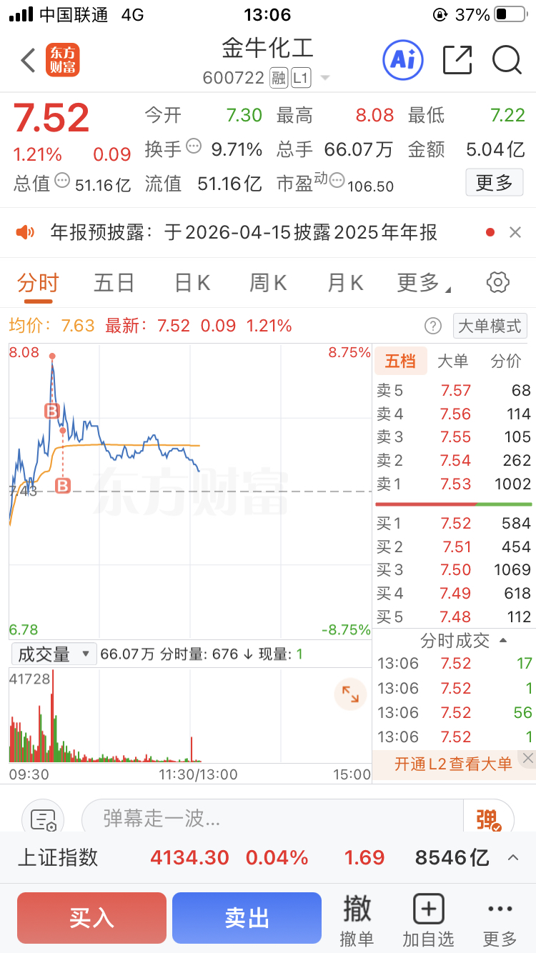 $金牛化工(SH600722)$ 哈哈哈,买崩了