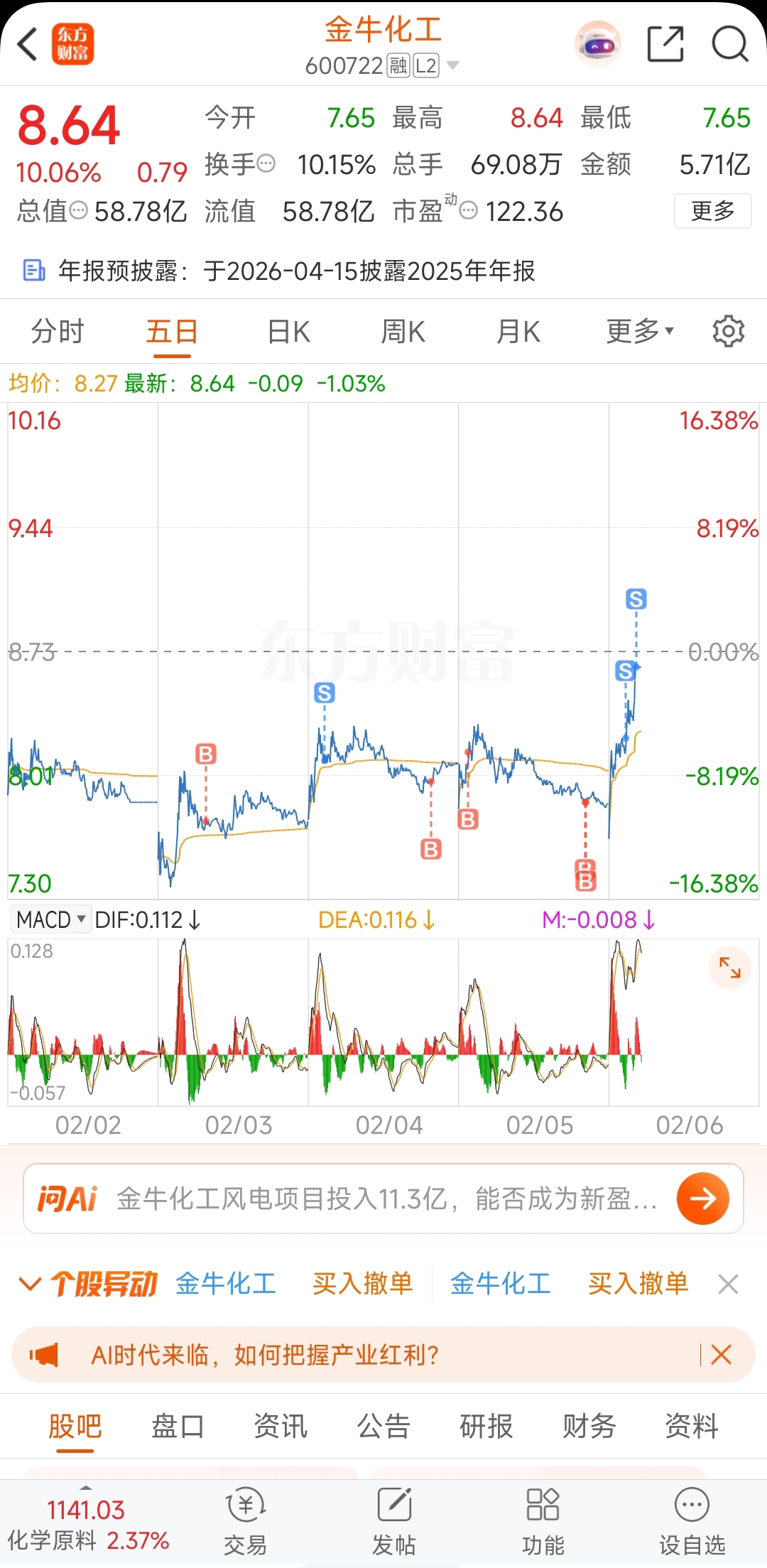 $金牛化工(SH600722)$ 赚点就行,真的怕了