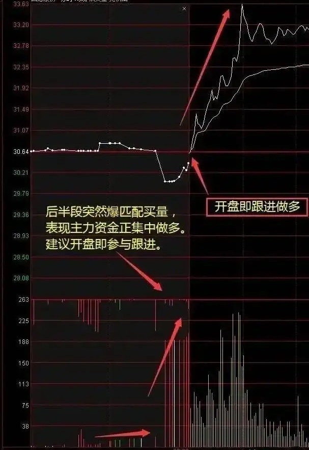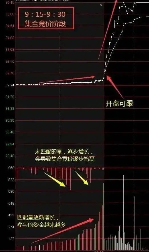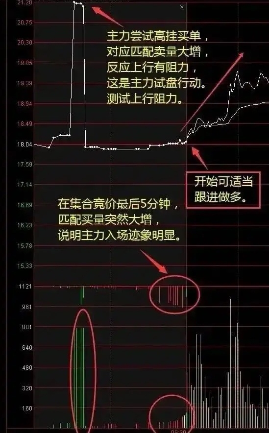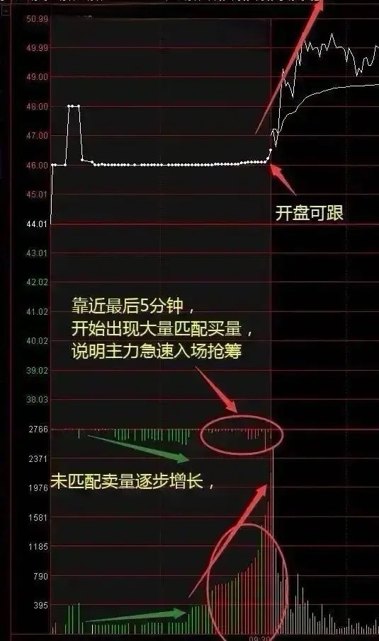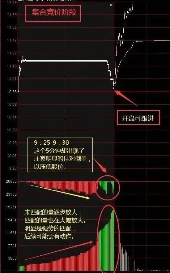 7、集合竞价后半段突然爆发匹配买单量,表明资金正在集中力量做多,开盘可跟。