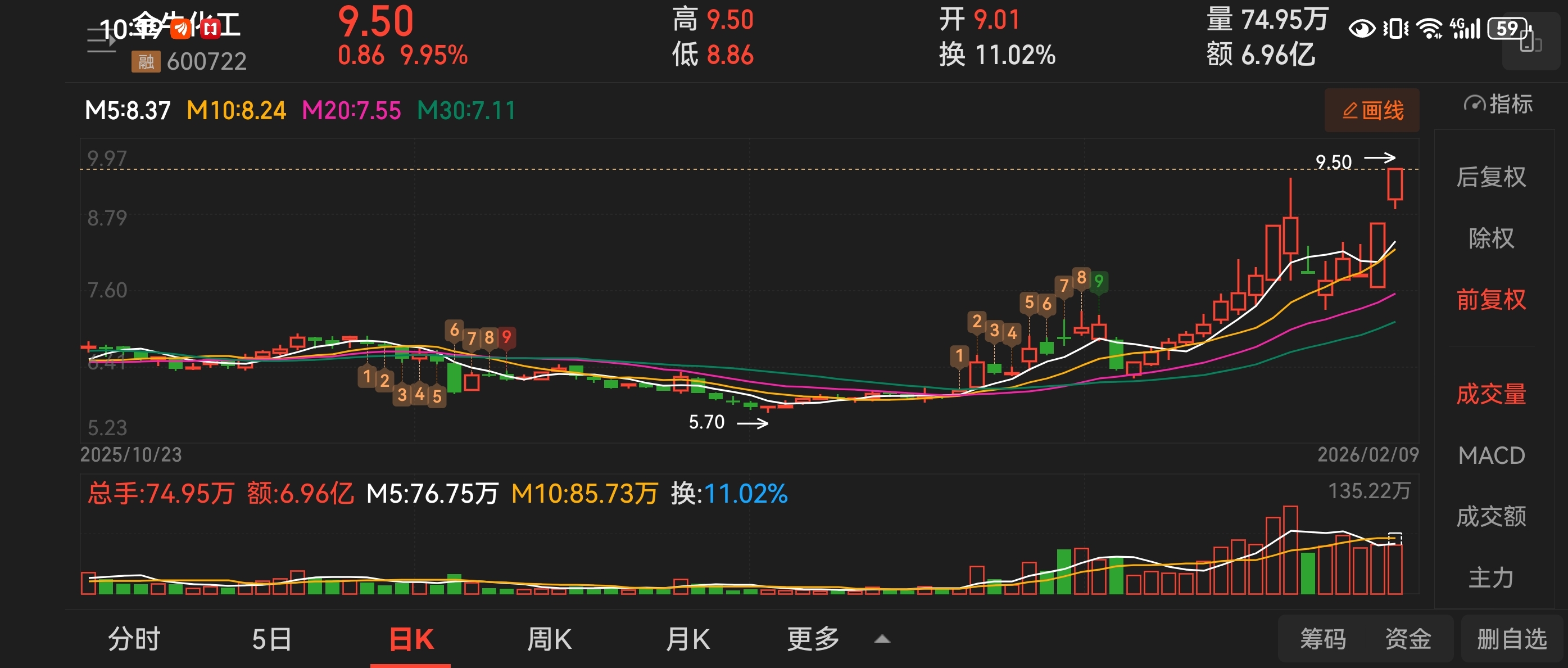 $金牛化工(SH600722)$ 上周四分享的金牛,两板