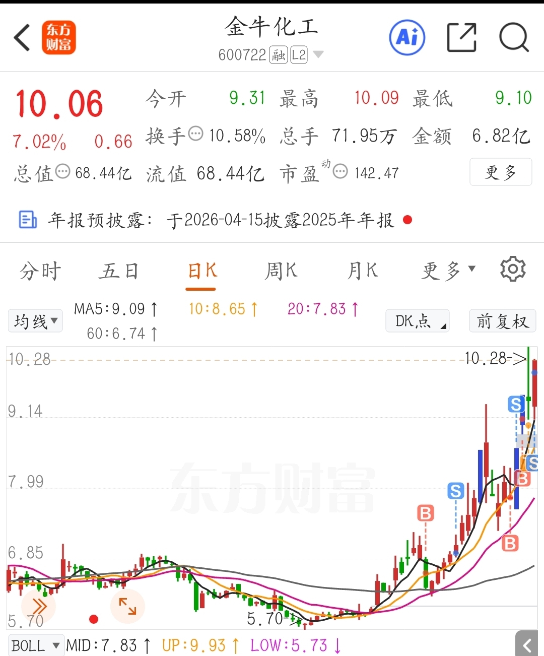 $金牛化工(SH600722)$ 三进三出有盈利,但是节奏跟不上,止盈离场。留下的发财。