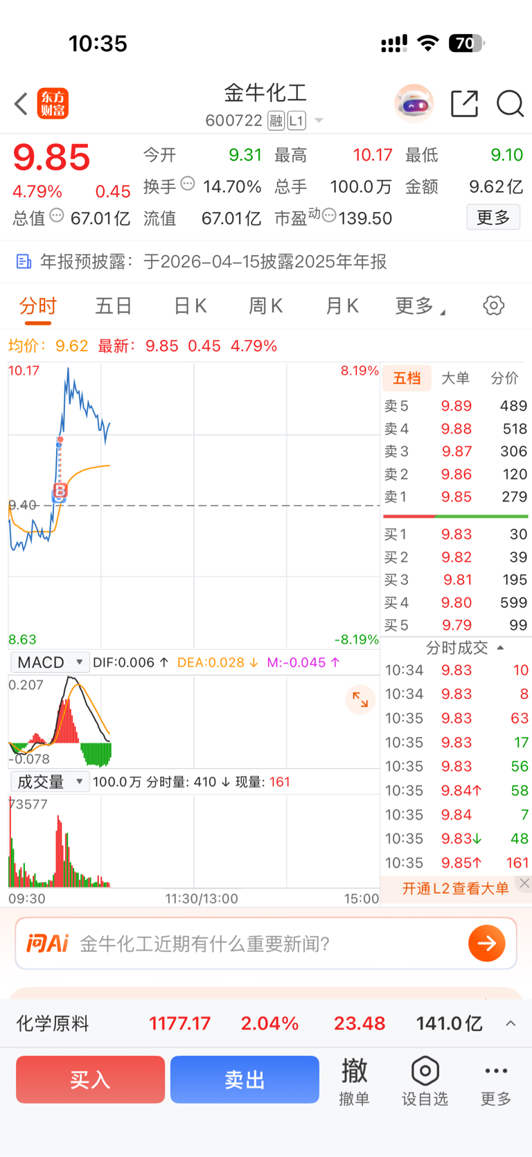 $金牛化工(SH600722)$ 没忍住买回来一半,感觉自己有点二