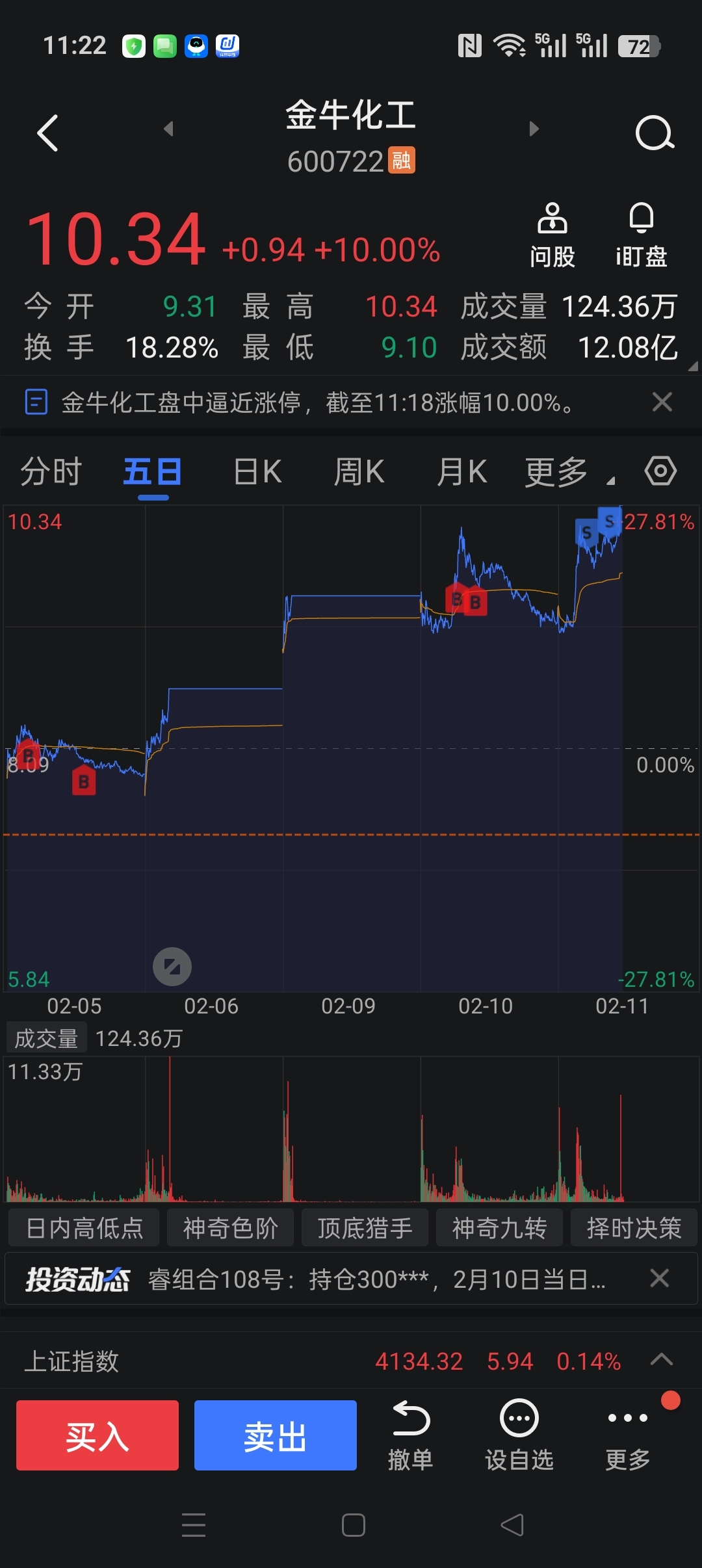 $金牛化工(SH600722)$ 卖飞一半了,主力牛逼