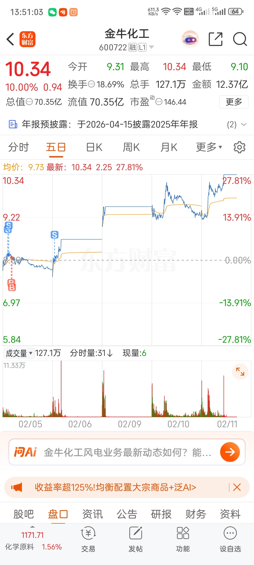 $金牛化工(SH600722)$ 金牛会惩罚每一个不相信他的人