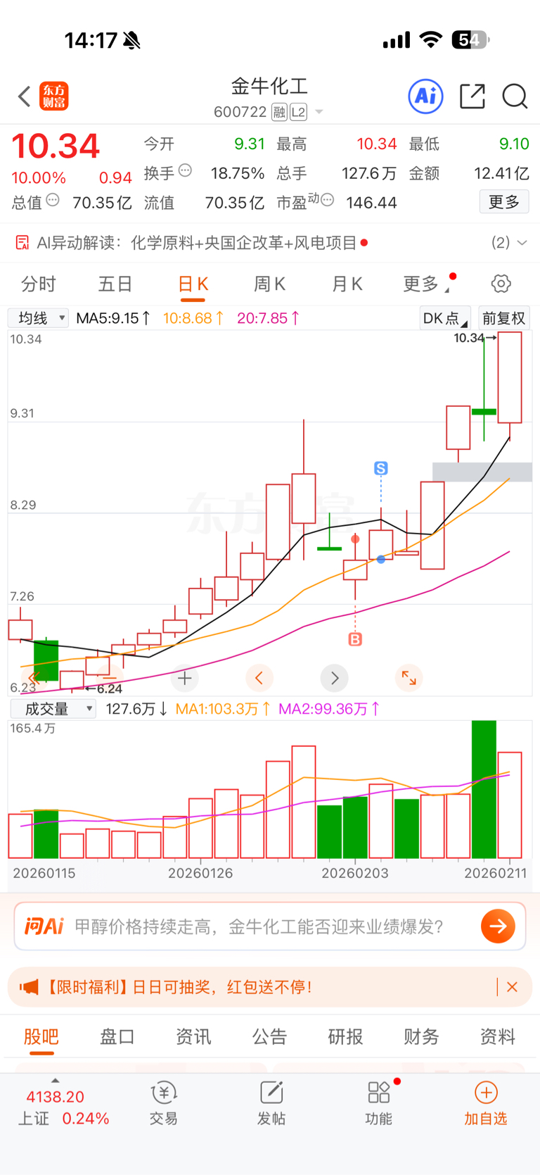 $金牛化工(SH600722)$ 我这是不是太蠢了
