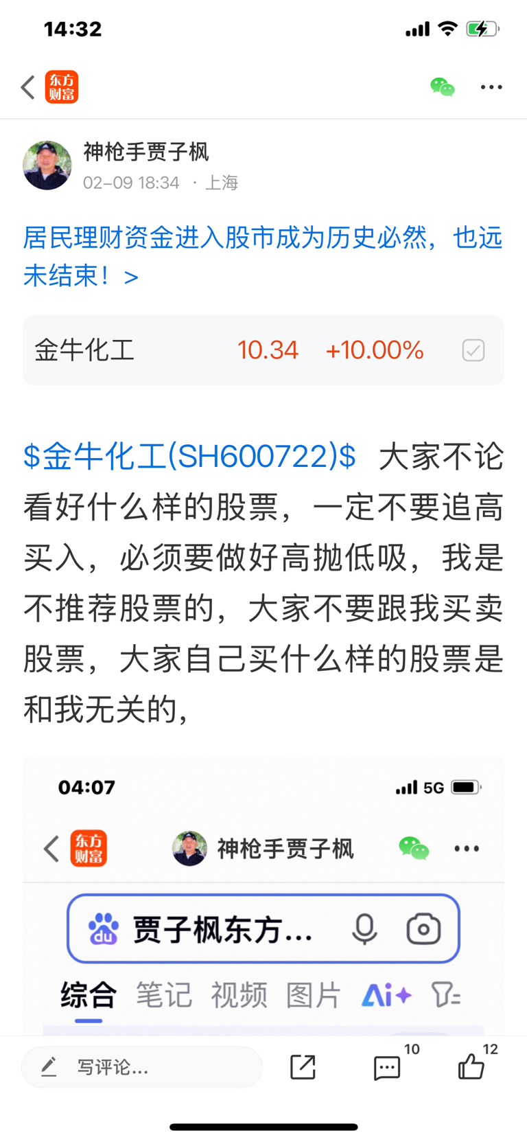 $金牛化工(SH600722)$ 这个是二月九号发表文章看好的股票,大家不要追高买入,必须要做好高抛低吸,我是不推荐股票的,大家不要跟我买卖股票,大家自己买什么样的股票是和我无关的,因为我是免费和大家一起交流股票,我是和大家一起学习的,我的观点仅供参考,投资有风险,风险要自己承受后果,