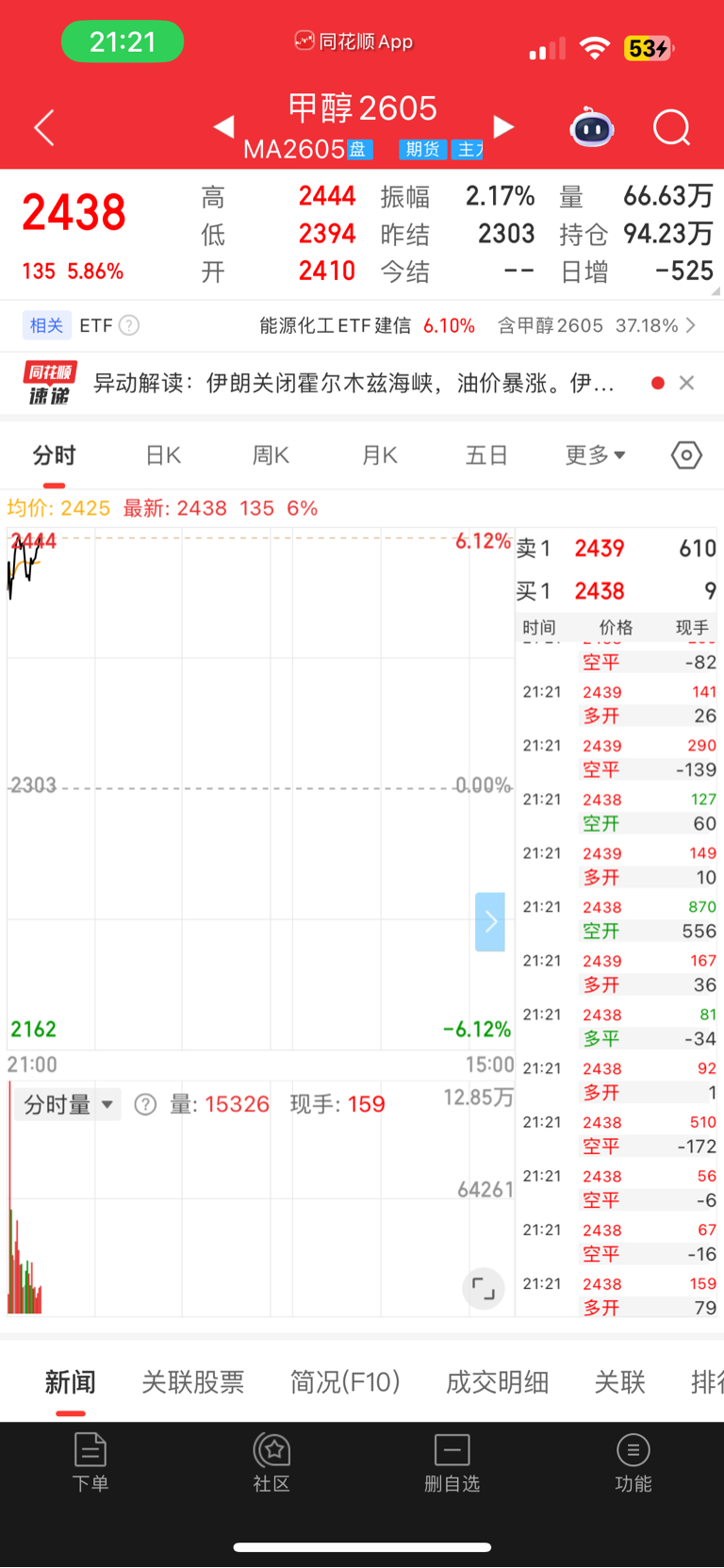 $金牛化工(SH600722)$ 甲醇期货是疯了