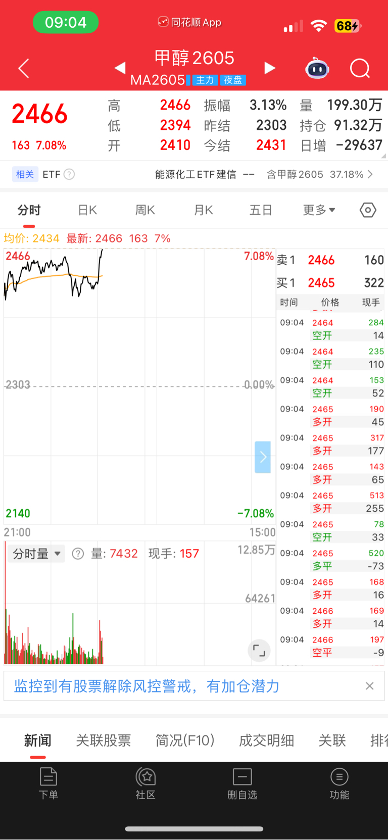 $金牛化工(SH600722)$ 甲醇期货燃爆了!金牛真的五个板起步了