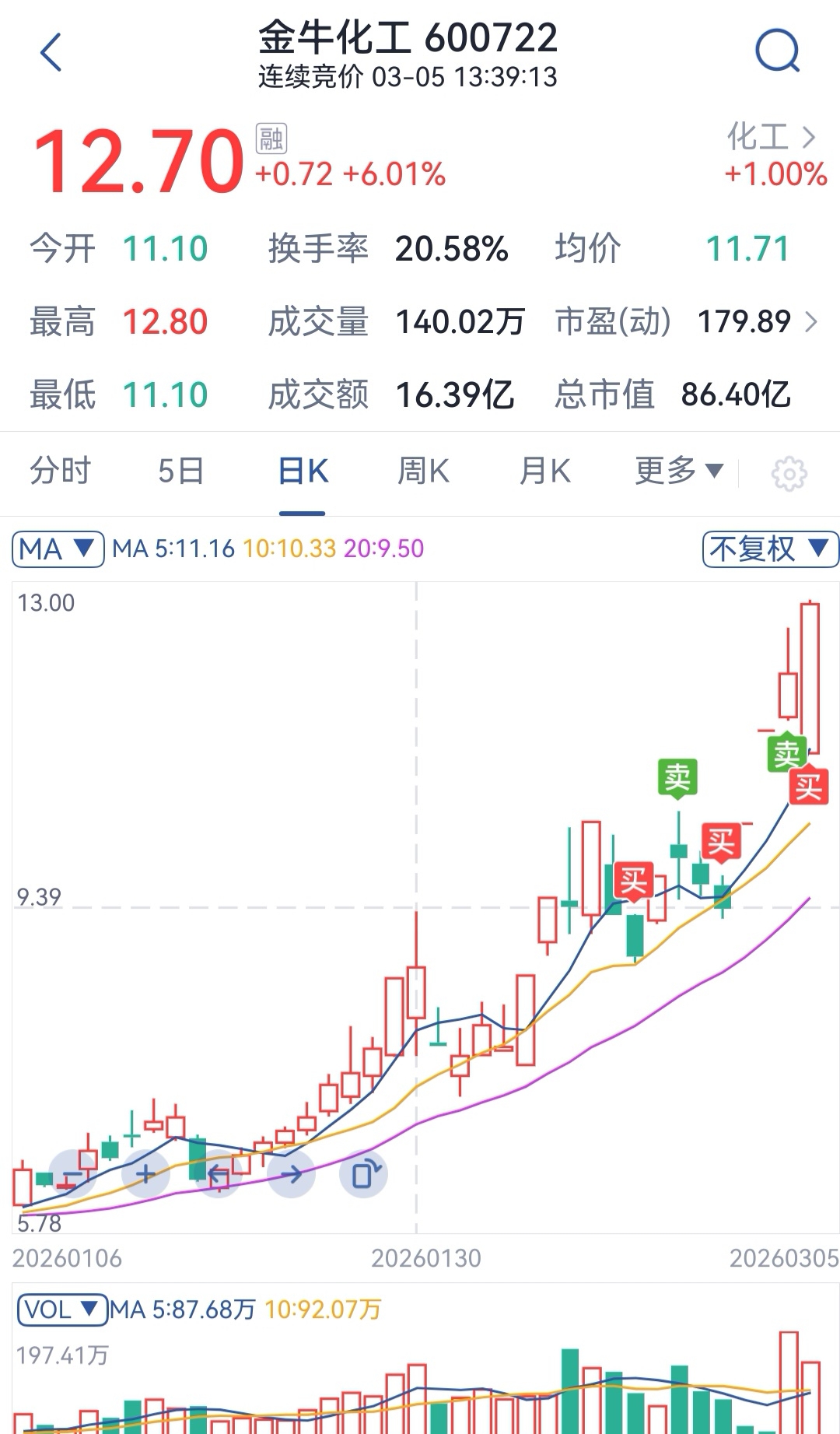 $金牛化工(SH600722)$ 今天-6%三进金牛。 牛不牛