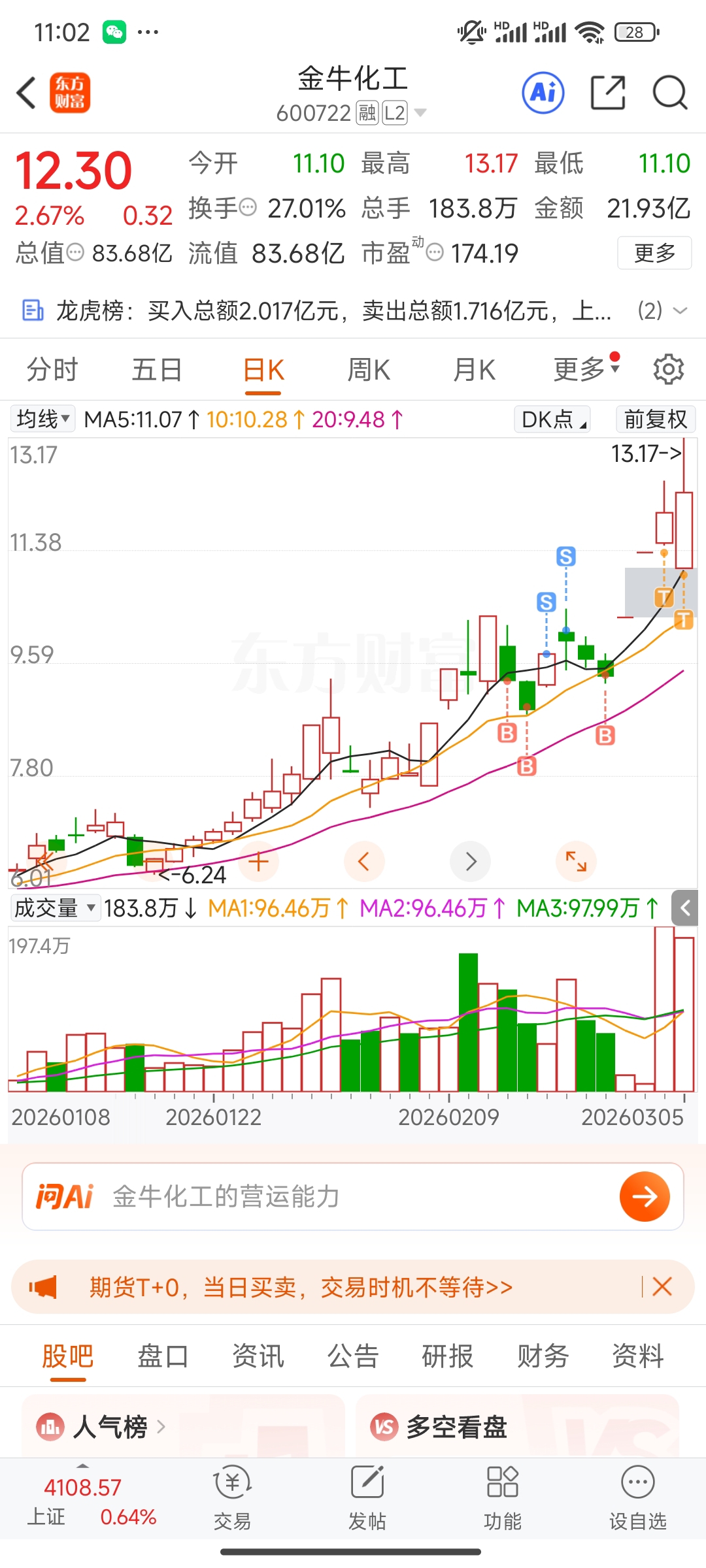 $金牛化工(SH600722)$ 明天不继续赌海峡情况了,放量这两天睡醒就要看新闻,明天直接走