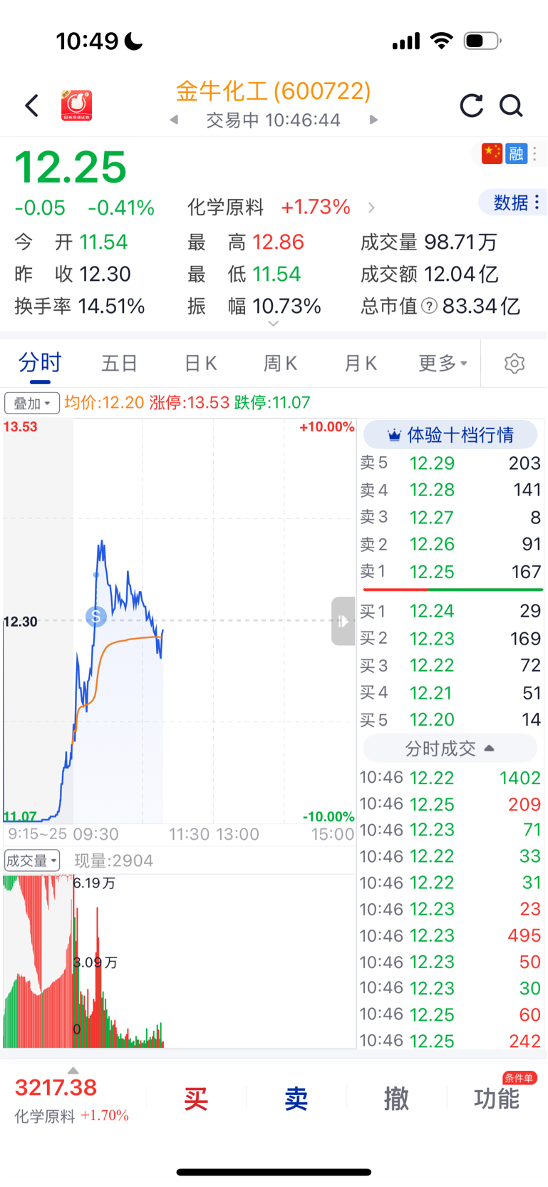 $金牛化工(SH600722)$ 早上清了,记住两个字:别贪