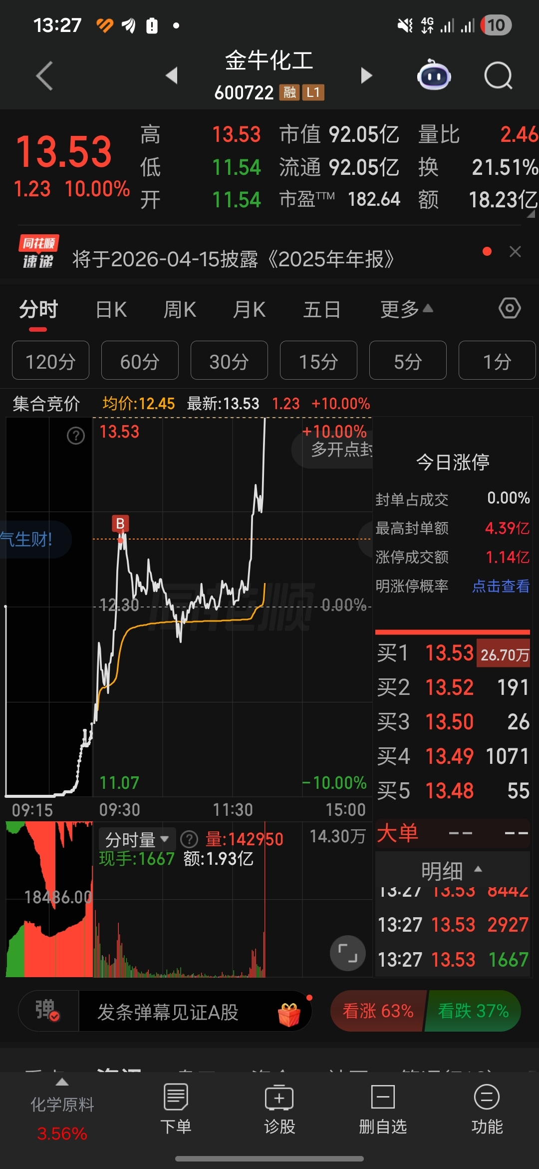 $金牛化工(SH600722)$ 昨天断板的预期,买点不是很好