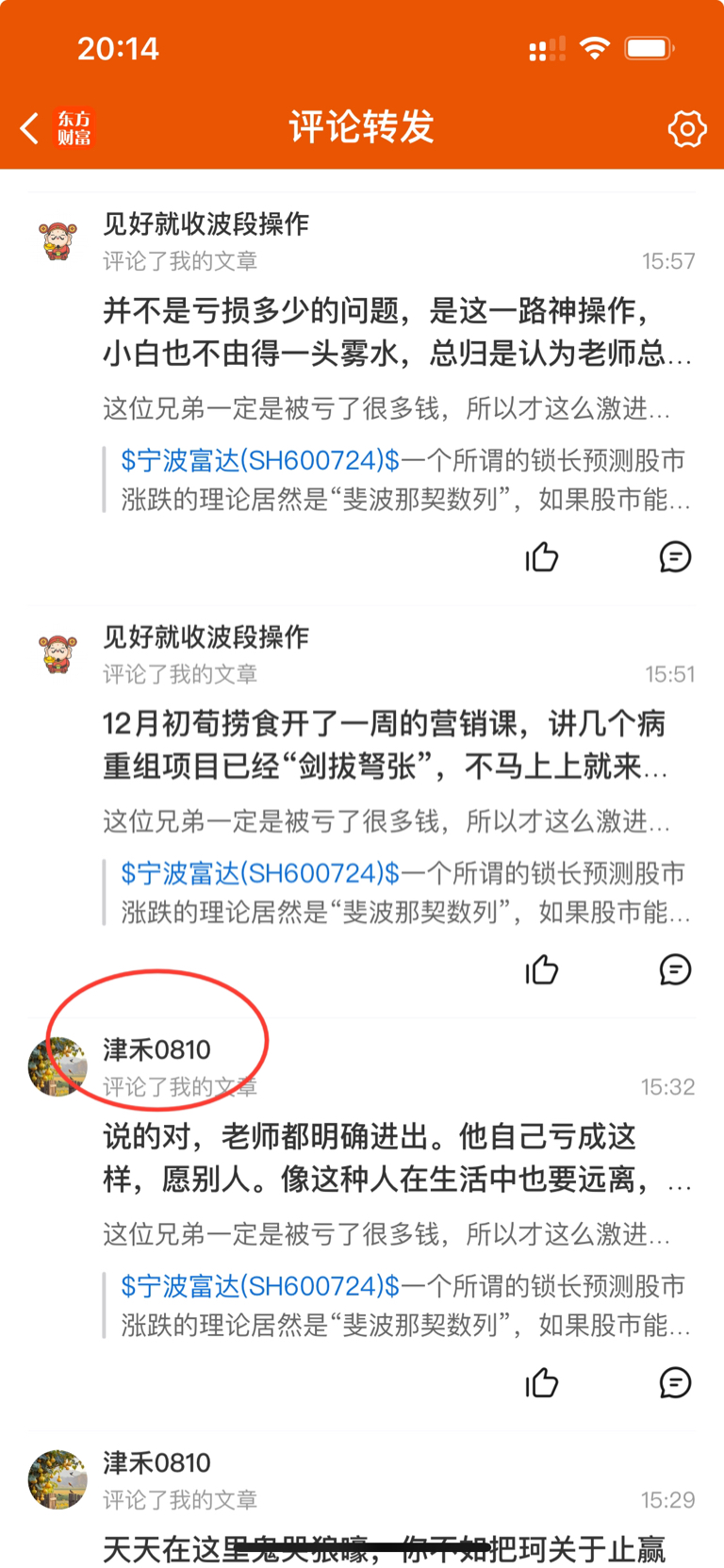 $宁波富达(SH600724)$ 津禾0810:“津”=天津,“禾”=合众,0810估计是工号,你也太弱者了吧、也不知道改个名字攻击我,这智商都得是负数呀,那怪一群人每天都在研究动物,专注动物尾巴,你怎么没把动物纲门都扒开看看