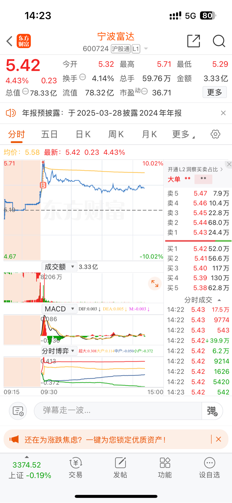 $宁波富达(SH600724)$ 打板未遂