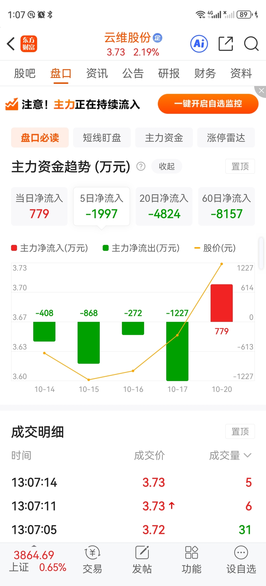 $云维股份(SH600725)$ 结束了多日的资金净流出,今天开始净流入了,代表了庄家主力开始由空转多了,但是散户却在流出