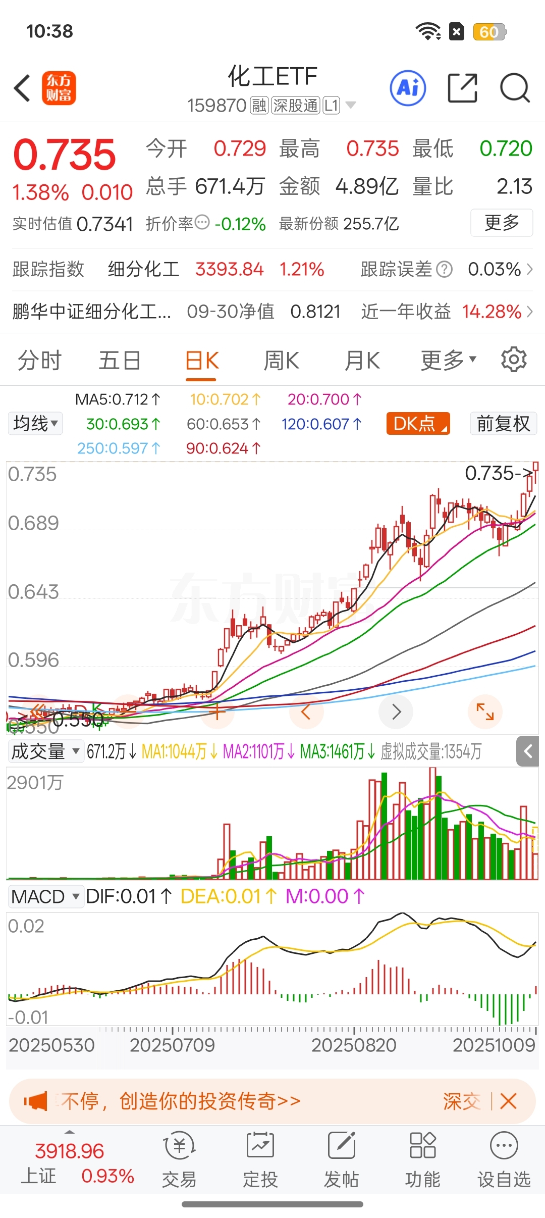 别人化工指数天天新高。是无人问津啊,跌了一个月还在这里