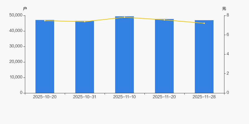 截至2025年11月28日,公司最新总股本为5.29亿股,且均为流通股。户均持有流通股数量由上期的1.11万股上升至1.13万股,户均流通市值8.1万元。
