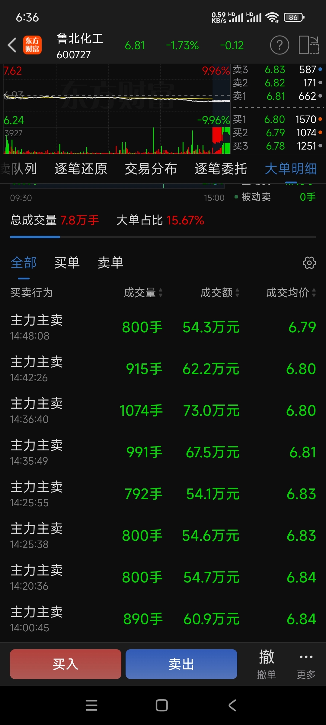 $鲁北化工(SH600727)$ 有本事星期一继续砸,砸到跌停,佩服你!
