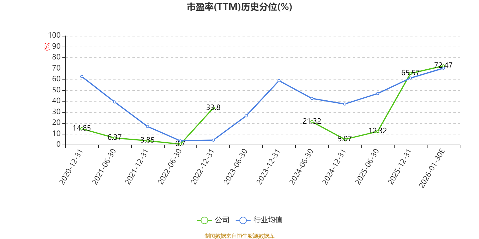 以本次披露业绩预告均值计算,公司近年市盈率(TTM)图如下所示: