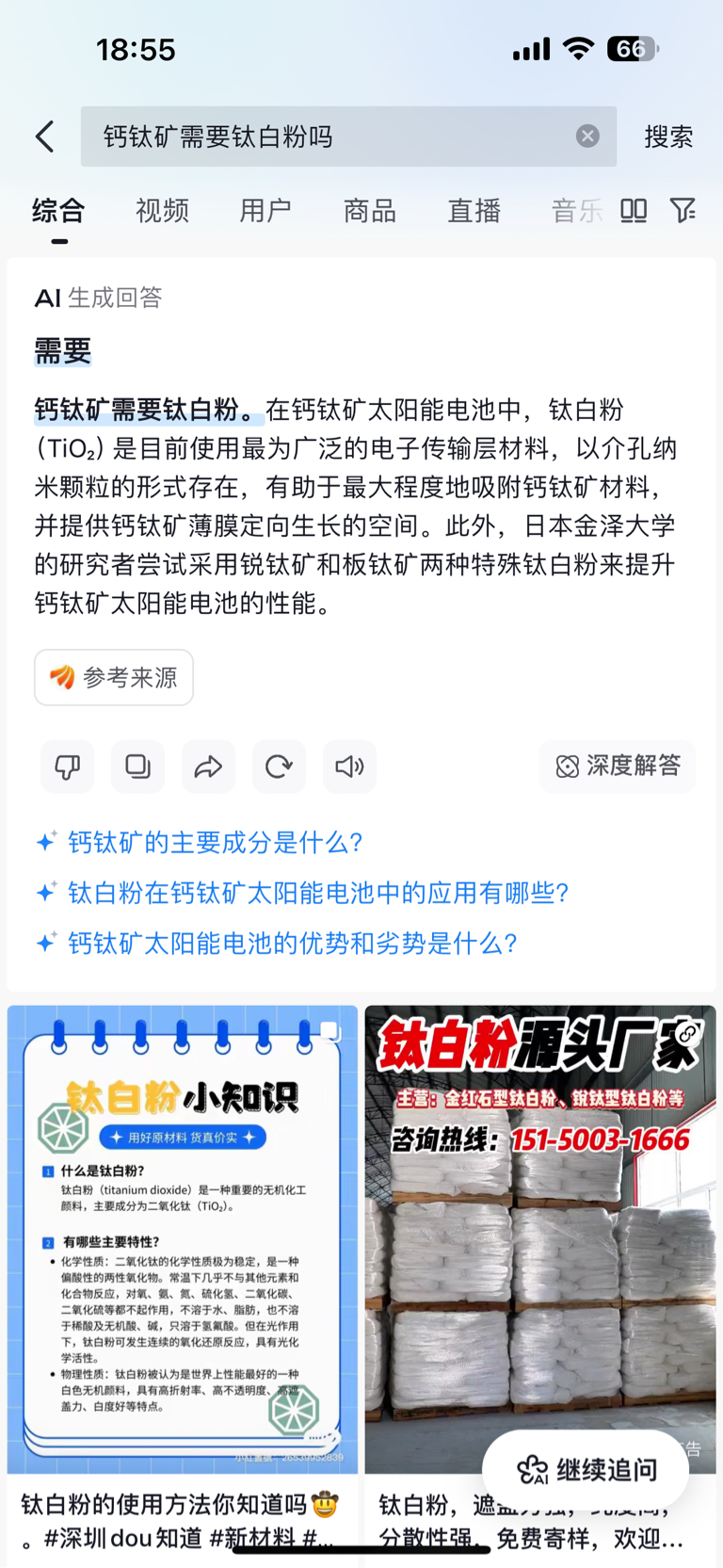 太空光伏项目的钛钙矿需要钛白粉的喔!