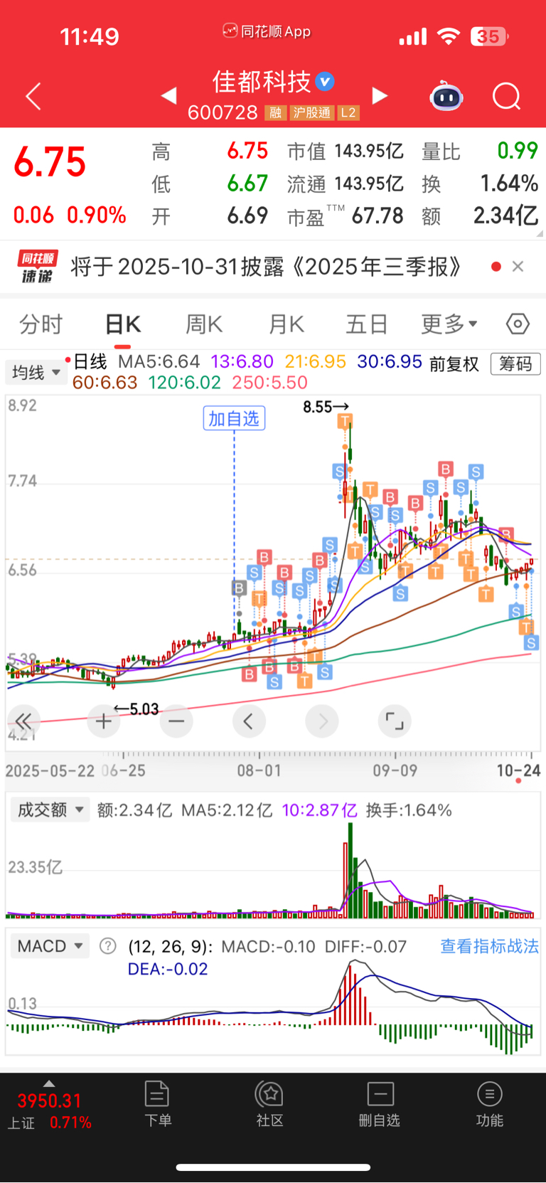 $佳都科技(SH600728)$ 7月5.7附近进的,到了8元以上逐步减仓,目前还留有一些底仓,感觉这股热门感念不少,业绩算中等,现在这个位置买涨一块钱问题不大