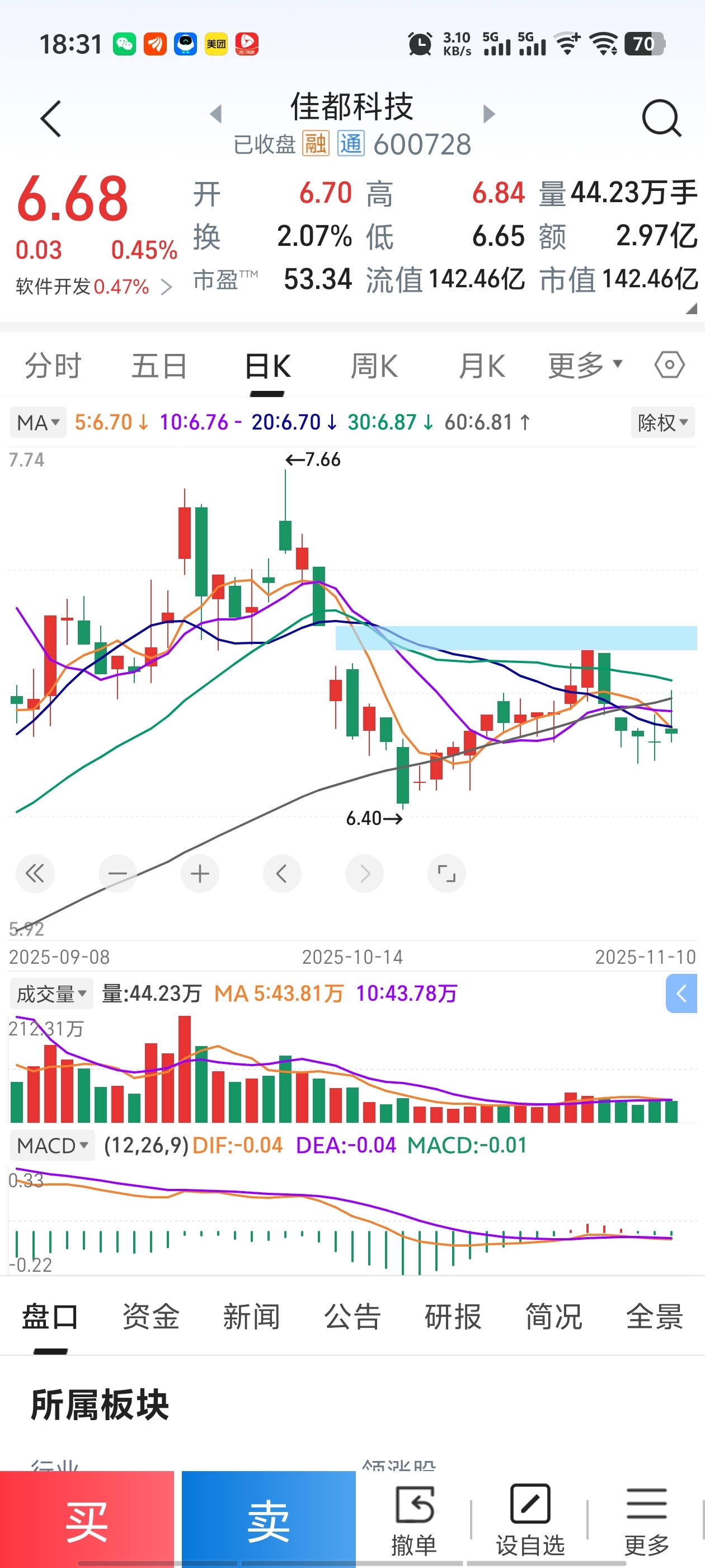 $佳都科技(SH600728)$ 连抗5个绿了,还能到7.66吗?
