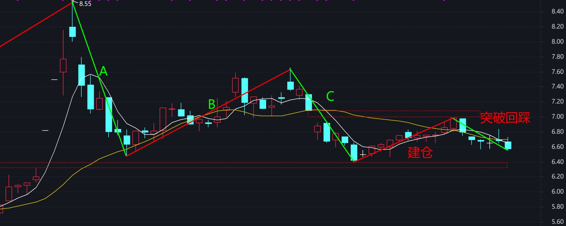 这里反弹7.61遇阻回落,这里两种走法一种跌幅不深构成W底,另一种深跌跌破6.4构成头肩底,我今个尾盘建仓了看看预测的对不对,如果上涨5浪是诱多,那下跌5浪就是诱空,让时间验证