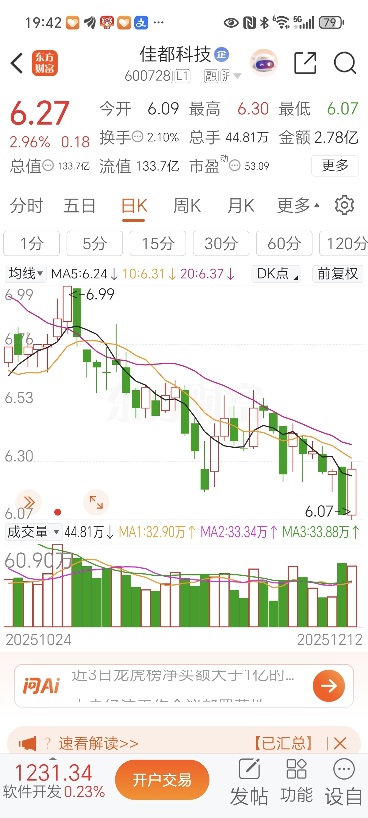 $佳都科技(SH600728)$ 昨天看到佳佳从8.55阶段高点调整近30%,并伴随有抛筹放量的时候,在6.11果断接了飞刀,早盘观察到有昨天弱无法获取数据,请稍后再试强的时候6.09又加了部分仓位,下午的走势给我加仓有了些许安慰,希望这次下跌末端放量能给一波像样的反弹,当然能是反转那年底红包就有着落了