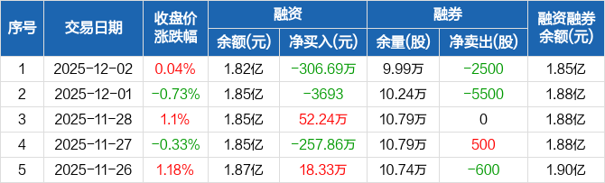 重庆百货:融资净偿还306.69万元,融资余额1.82亿元(12-02)
