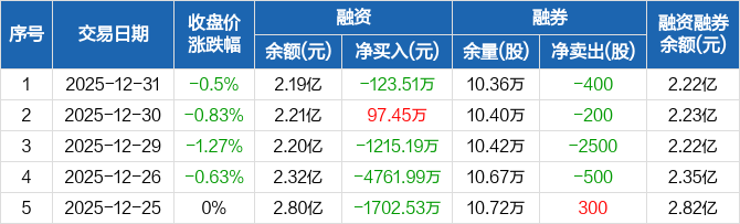 重庆百货:融资净偿还123.51万元,融资余额2.19亿元(12-31)