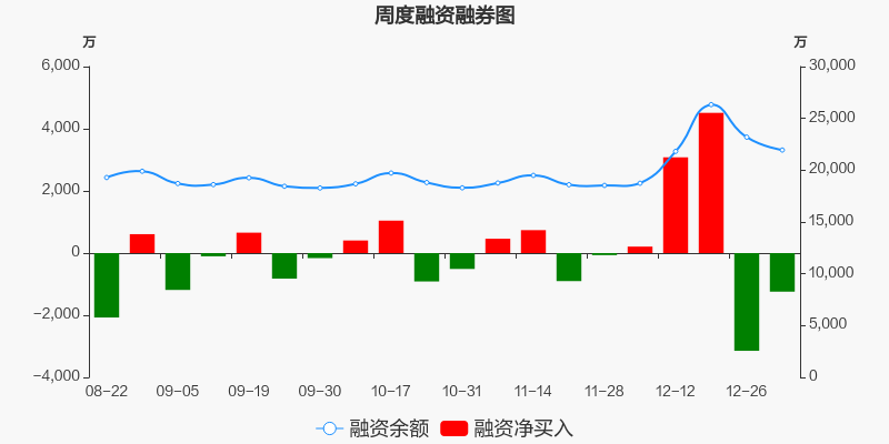 重庆百货本周(2025/12/29-2025/12/31)累计跌幅达2.59%,截至12月31日最新股价报收26.00元。从增量上来看,12月29日至12月31日融资买入交易规模4264.25万元,融资偿还规模5505.5万元,期内融资净偿还1241.26万元。从存量上来看,截止1月4日,重庆百货融资融券余额2.22亿元,其中融资余额规模2.19亿元,融券余额规模269.36万元。