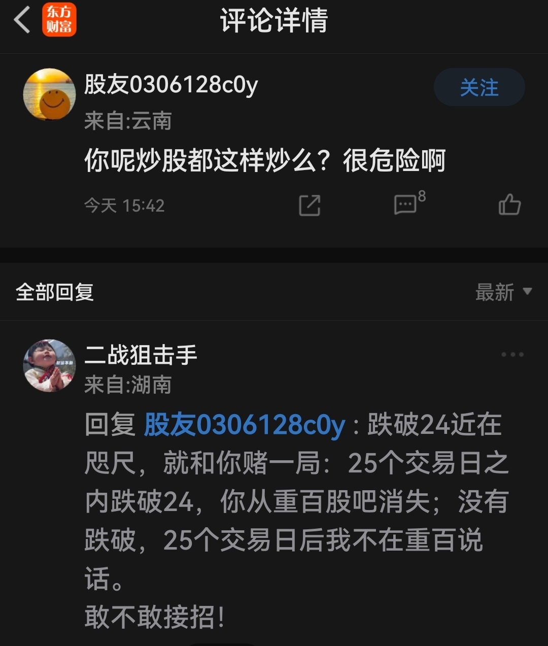 温馨提示: 1.根据《证券法》规定,禁止编造、传播虚假信息或者误导性信息,扰乱证券市场;2.用户在本社区发表的所有资料、言论等仅代表个人观点,与本网站立场无关,不对您构成任何投资建议。用户应基于自己的独立判断,自行决定证券投资并承担相应风险。《东方财富社区管理规定》