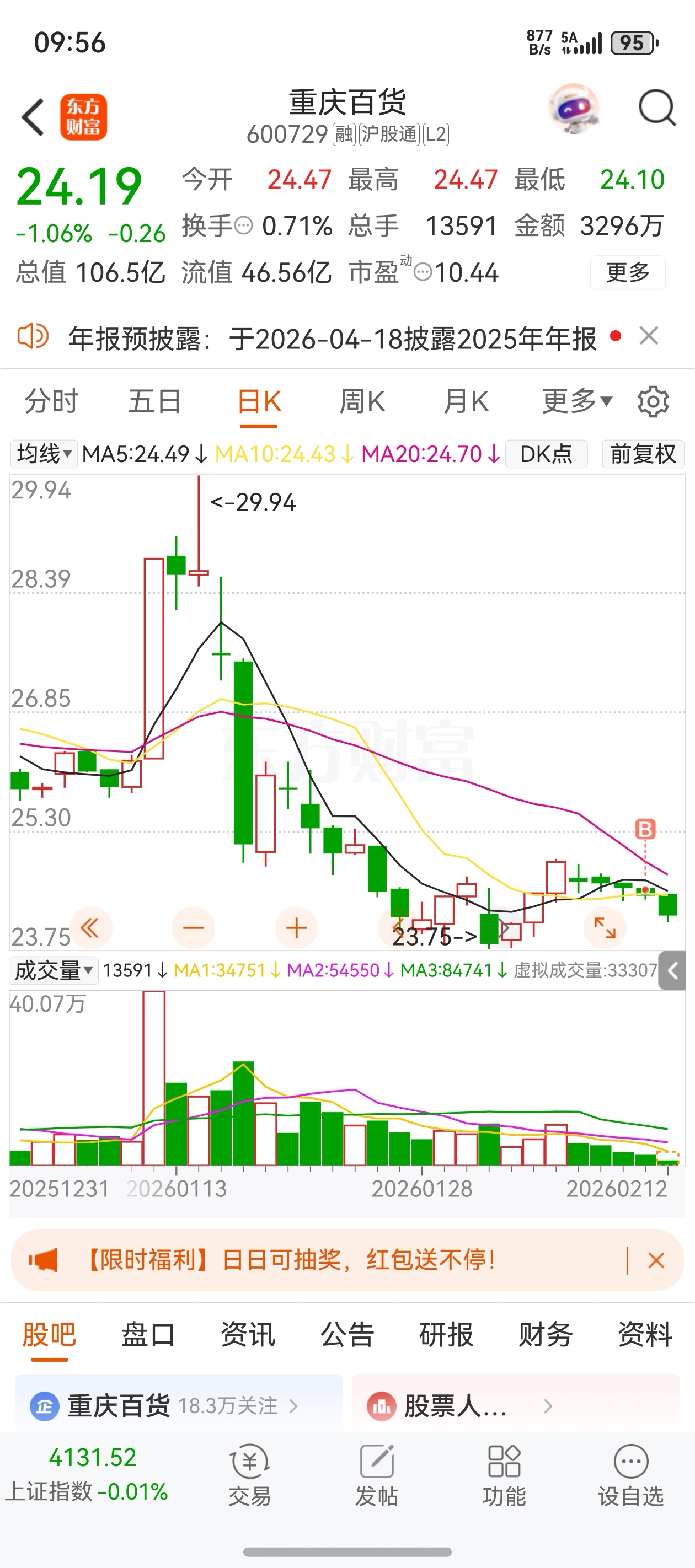 $重庆百货(SH600729)$ 人无语的时候真的会笑,就等我进来呢?