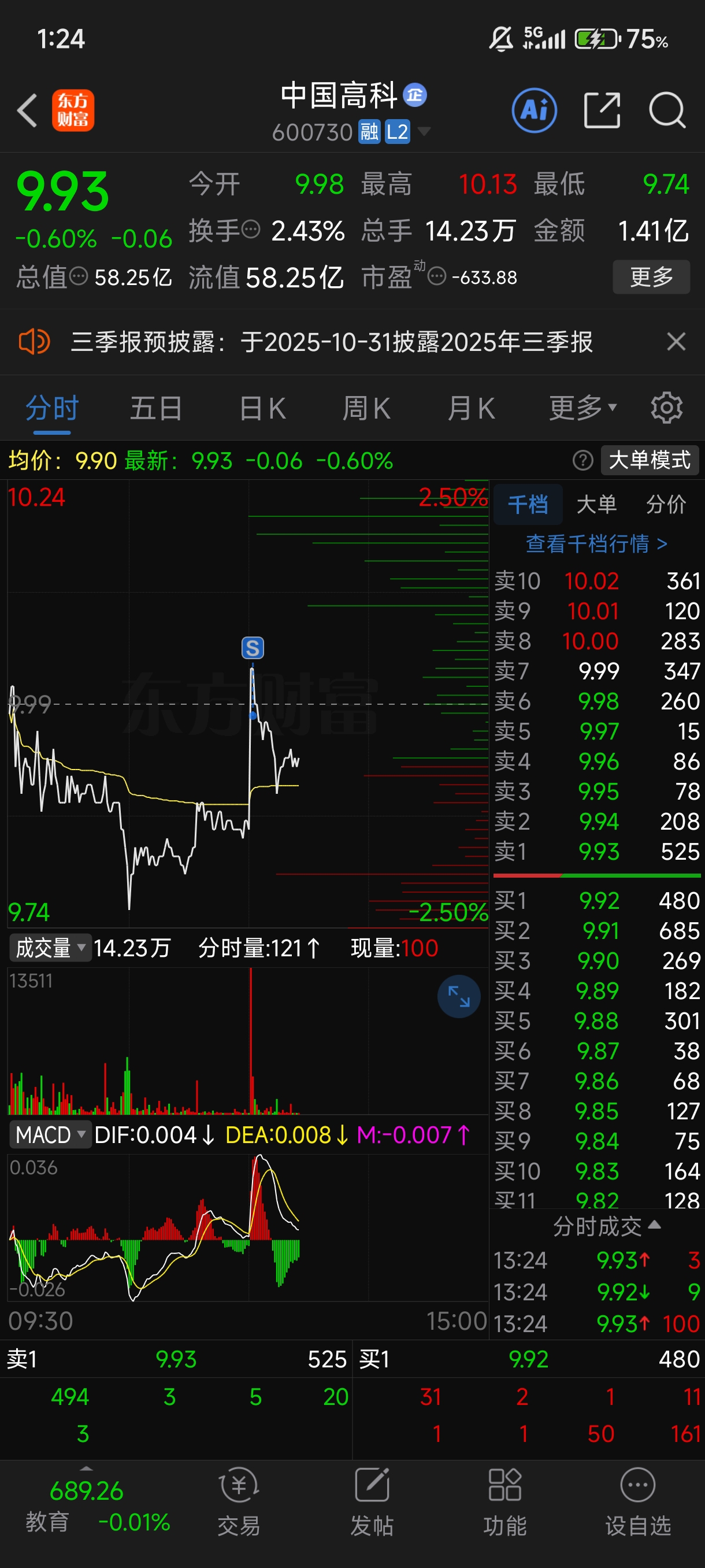 $中国高科(SH600730)$ 感谢主力大哥给机会逃命