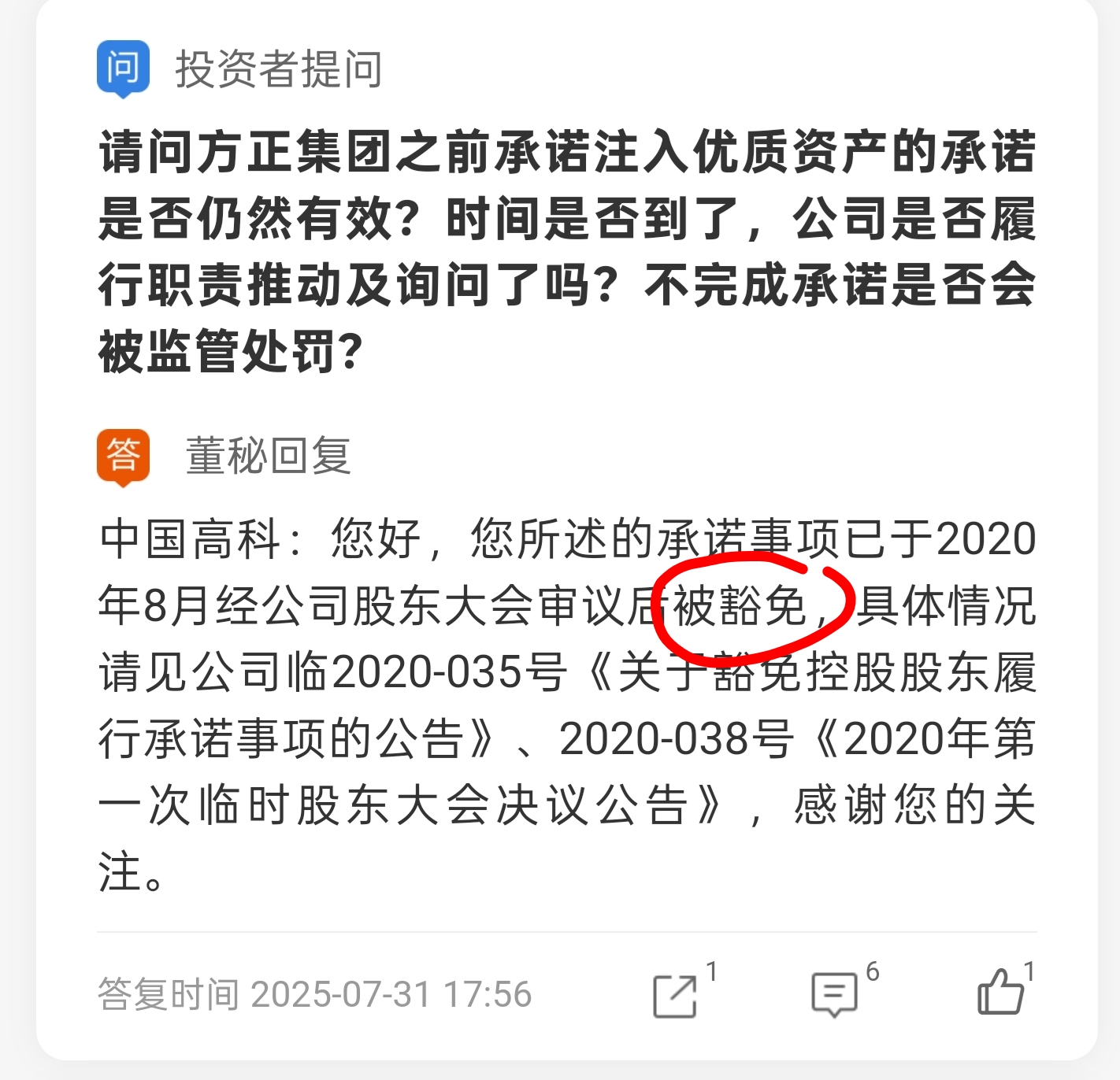 $中国高科(SH600730)$ 为什么底下一群人在说方正科技?这不是都已经豁免了