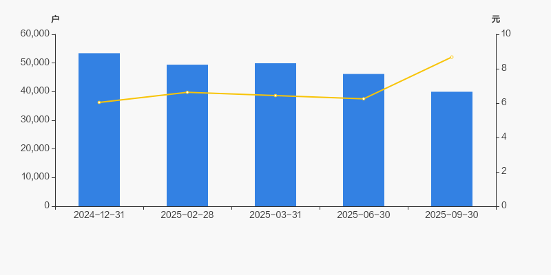 2024年12月31日至今,公司股东户数显著下降,区间跌幅为25.19%。2024年12月31日至2025年9月30日区间股价上涨43.70%。