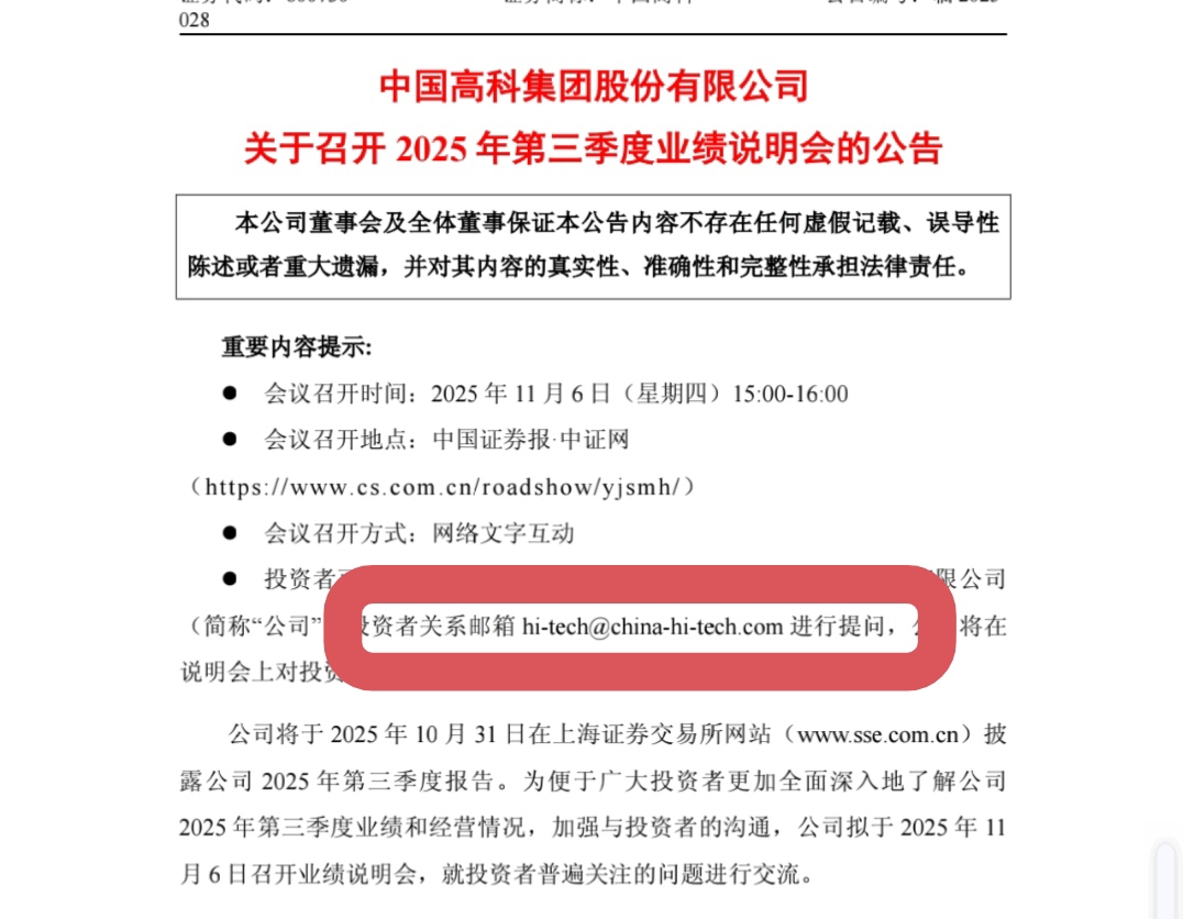 $中国高科(SH600730)$ 有不懂?愤慨的?不满的?意难平的?信心不足的?将问题通过邮箱提问?