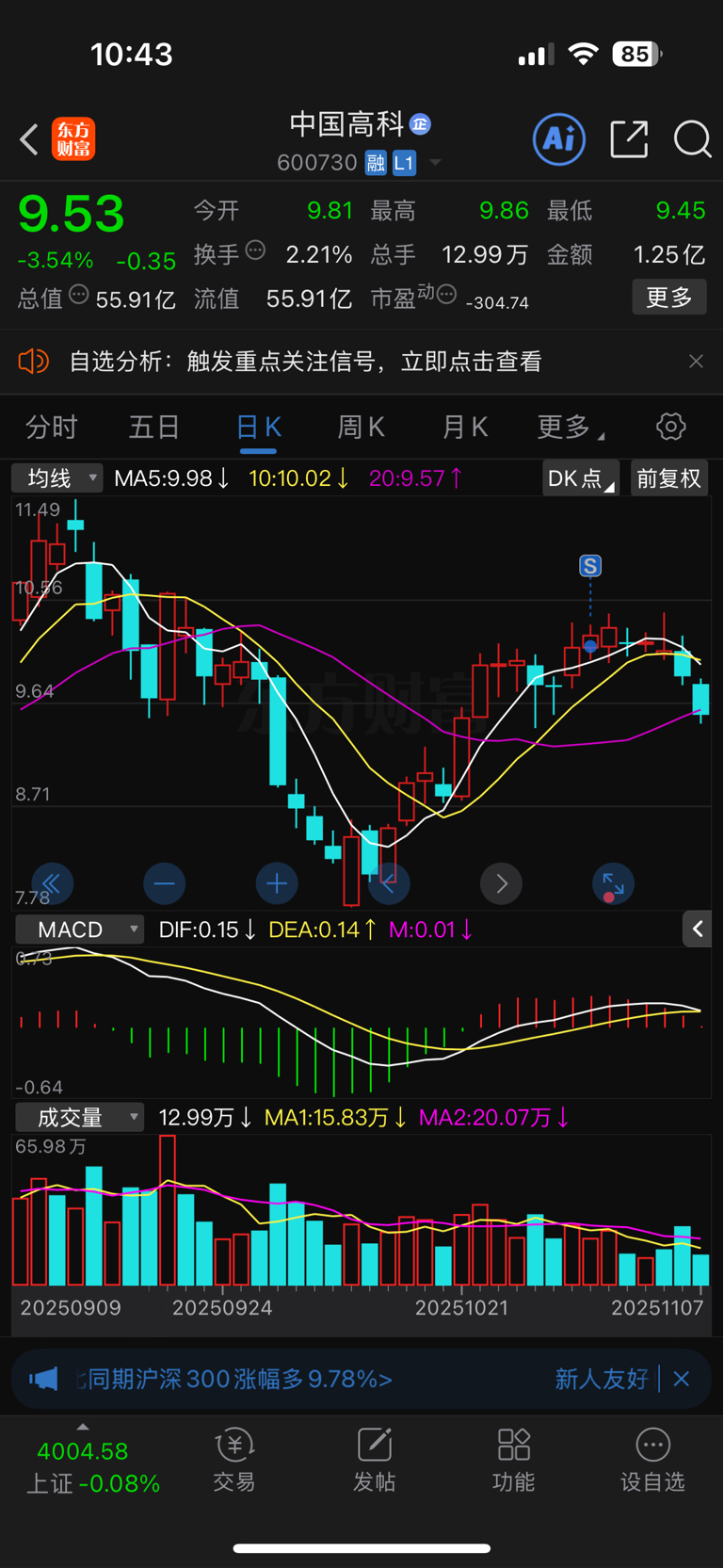 $中国高科(SH600730)$ 兄弟们 还好吗