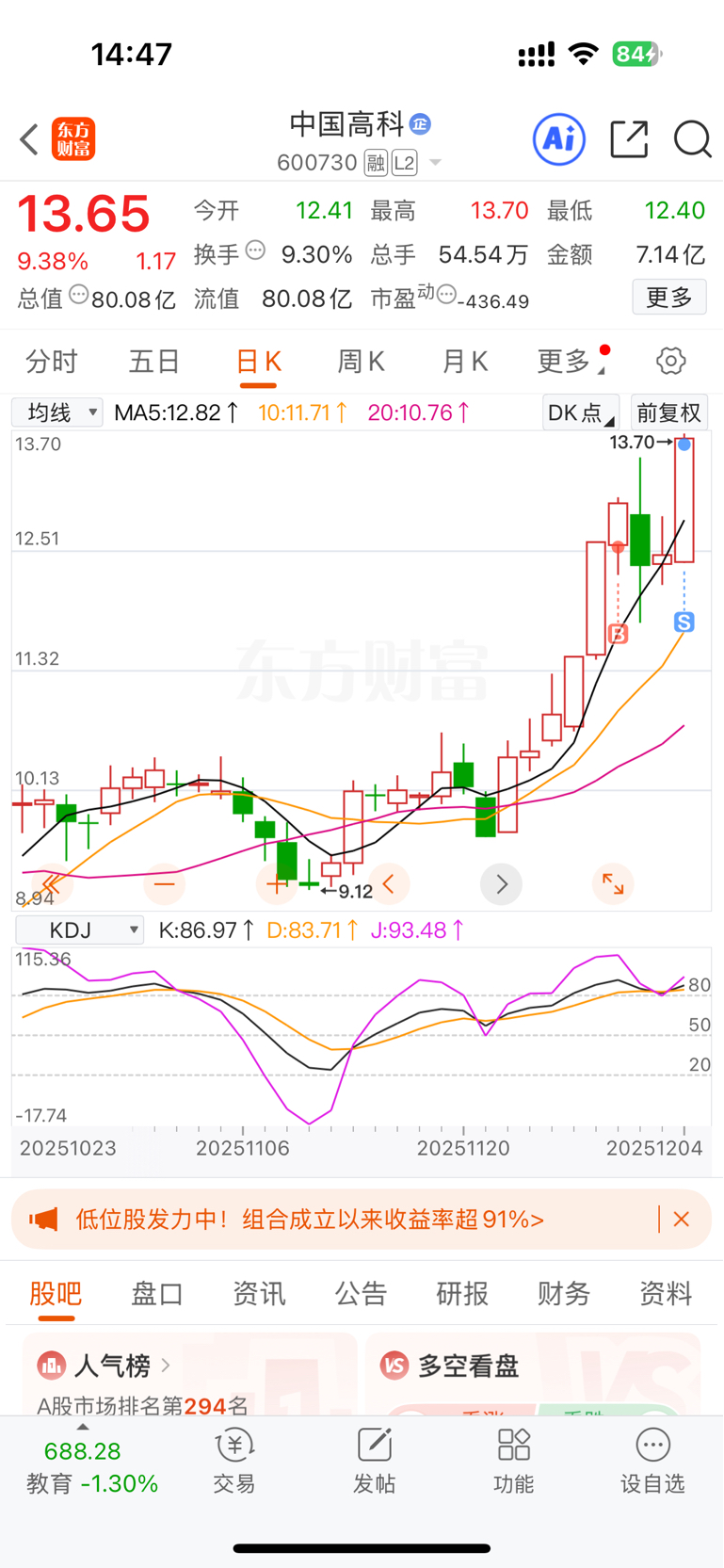 $中国高科(SH600730)$ 九个点走了,留下的发财