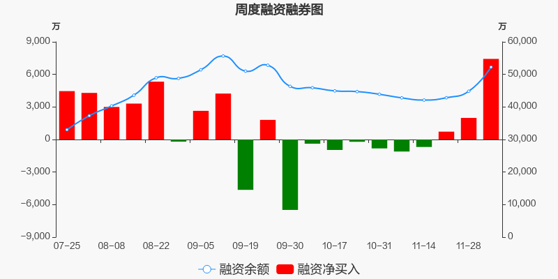 中国高科本周(2025/12/01-2025/12/05)累计涨幅达9.28%,截至12月5日最新股价报收13.78元。从增量上来看,12月1日至12月5日融资买入交易规模3.78亿元,融资偿还规模3.04亿元,期内融资净买入7428.89万元。从存量上来看,截止12月7日,中国高科融资融券余额5.22亿元,其中融资余额规模5.22亿元,融券余额规模0元。